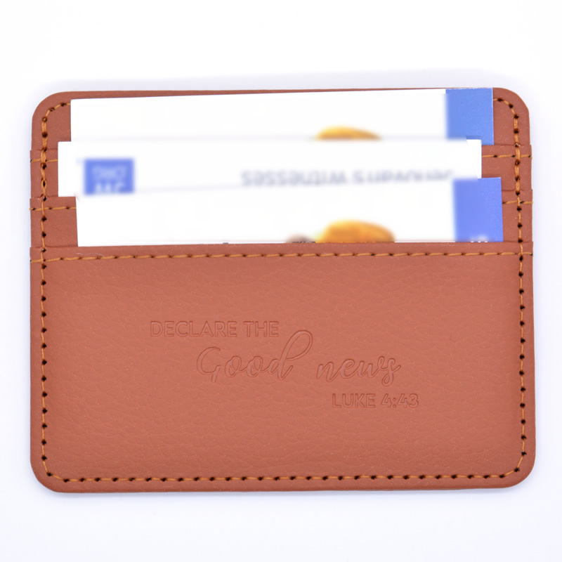 Contact Card Holder - Faux Leather - 4 Pockets - Tan Brown