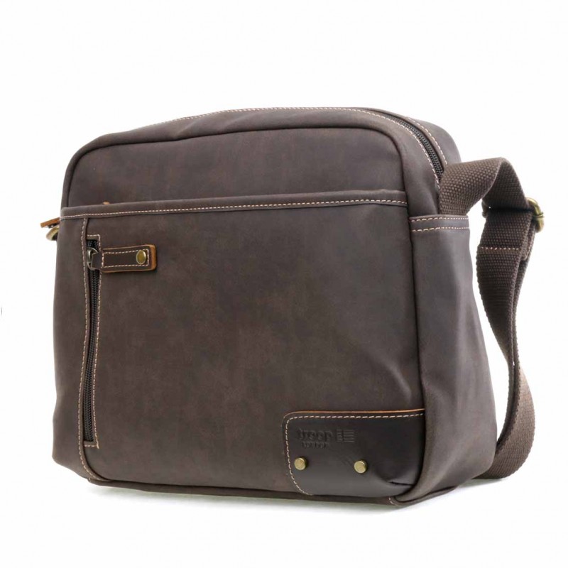 TROOP LONDON FAUX LEATHER MESSENGER BAG - Dark Brown