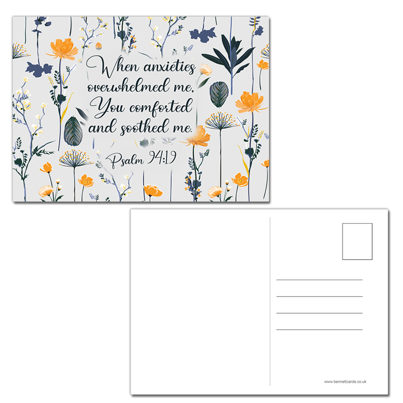 Postcard Gift Framing Print - Grey and Yellow - Comfort - Psalm 94:19 - Pack Size